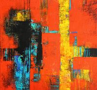Abstract, kleurrijk beeld, decoratieve schilderkunst, Lenesfreude, rood, zwart, geel, blauw, wanddecoratie voor kantoor, woonruimte en praktijk, expressief, spateltechniek, modern, hedendaags schilderen