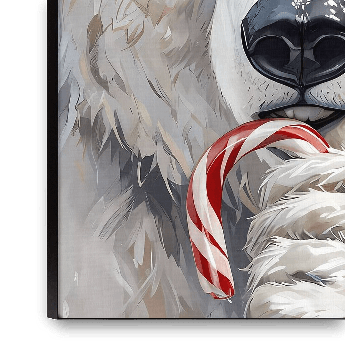 Witte ijsbeer met bril die zuurstok eet, kerstkunstwerk