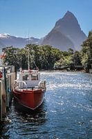 Milford Sound steiger met Mitre Peak, Southland, Fiordland National Park, Zuidereiland, Nieuw-Zeeland