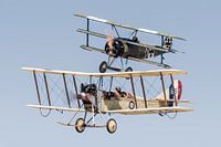 Een tweedekker/dubbeldekker en driedekker vliegtuig uit de Eerste Wereldoorlog voeren een luchtgevecht uit. De dubbeldekker is een Royal Aircraft Factory B.E.2 waarvan er ongeveer 3.500 exemplaren van w-zijn gebouwd en waarvan het eerste exemplaar in 1912 de lucht in ging. De Royal Aircraft Factory maakte dit type tweezits verkenner in 1912. Gebaseerd op de Be.1 kreeg dit type een Renault motor. De Be.2a was een iets verbeterde versie met de RAF 1a motor. Toen de Eerste Wereldoorlog uitbrak werd de Be.2 ook gebruikt boven Frankrijk. Het toestel voldeed goed als verkenner en was erg stabiel.