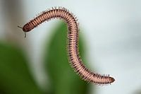 Miljoenpoot ( Diplopoda) van onderen, door een glasplaat, gefotografeerd. Hoe bijzonder om al die pootjes te zien.