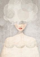 Surrealistisch portret. Bewerkt met waterverf en verschillende patronen en structuren.