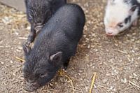 Minivarkens baby's bij de eerste wandeling buiten in Duitsland