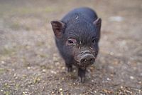 Minivarkens baby's bij de eerste wandeling buiten in Duitsland