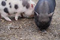 Minivarkens baby's bij de eerste wandeling buiten in Duitsland