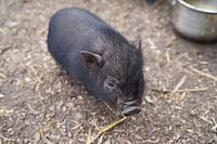 Minivarkens baby's bij de eerste wandeling buiten in Duitsland