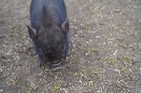 Minivarkens baby's bij de eerste wandeling buiten in Duitsland