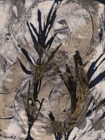 Deze serene collageserie combineert botanische monotypes van varens en gebladerte met abstracte organische vormen, allemaal met de hand gedrukt in acryl op papier met textuur. Met een rustgevend palet van neutraal beige, warm bruin en zacht grijs omarmt elk stuk de wabi-sabi-esthetiek - natuurlijk, onvolmaakt en rustig mooi.