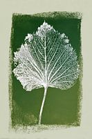 Breng rust en eenvoud in je interieur met deze minimalistische bladprint, uitgevoerd in de stijl van een inktstempel en geplaatst tegen een zachte, groene achtergrond. De gedetailleerde bladstructuur contrasteert prachtig met het kalmerende groen, wat zorgt voor een tijdloos en natuurlijk effect.