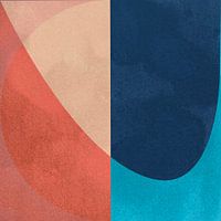 Minimal art, modern. Abstracte organische vormen, geïnspireerd door Scandinavisch design in verschillende blauw- en roodtinten. Digital art collage.