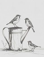 Koop dit vogel kunstwerk Minimal art - lijntekening mussen van Emiel de Lange op canvas, aluminium dibond, (ingelijste) fotoprint, behang en ArtFrame, op maat geprint in Fine-Art kwaliteit.