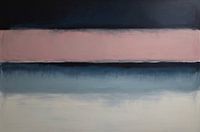 Dit ontwerp is een toonbeeld van minimalisme en rust. De zachte, vloeiende overgang van diepe blues en subtiele roze naar de kalmerende grijstinten en blanken roept een gevoel van vrede en sereniteit op. De horizontale stroken kleur zijn strategisch gestapeld om een balans te creëren die zowel simpel als complex is. Het is een stille…
