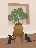 Een eenvoudige illustratie van een schattige kat die binnenshuis met een pot speelt