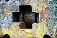 Minimalisme Kunst Fotografie Roestige Scheepswand in de haven van Scheveningen. Vlaggetjesdag. Scheepswand verweert door weer, wind en zilte water. Eenvoud van schoonheid.