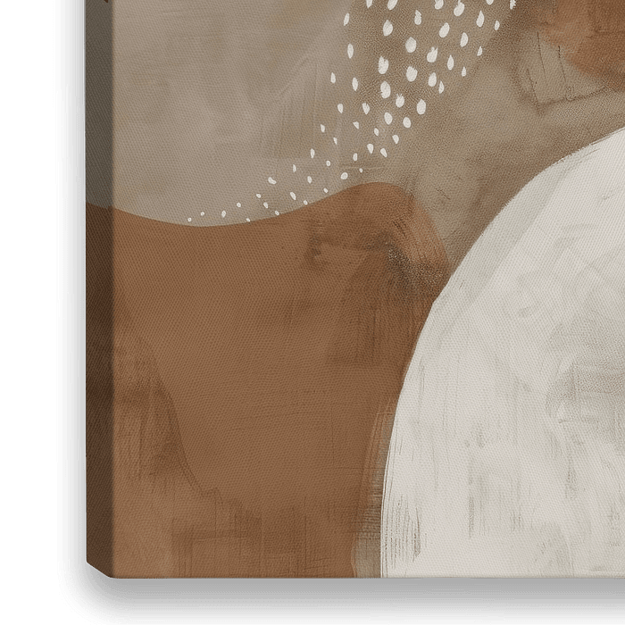 "Aards Minimalisme" presenteert een verfijnde weergave van moderne abstractie, waarbij organische vormen en aardse tinten harmonieus samenvloeien in een ingetogen compositie. Dit kunstwerk straalt een rustige sereniteit uit, met een minimalistische benadering die de essentie van vorm en kleur omarmt.