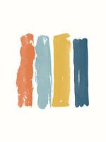 Minimalist Paint is een abstracte, minimalistische print met verfstrepen. De verfstrepen hebben de kleuren geel, lichtblauw, donkerblauw en oranje. Een frisse print voor aan de muur.