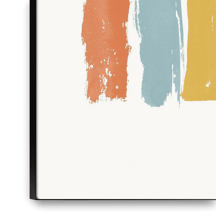 Minimalist Paint is een abstracte, minimalistische print met verfstrepen. De verfstrepen hebben de kleuren geel, lichtblauw, donkerblauw en oranje. Een frisse print voor aan de muur.