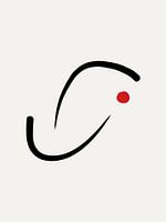 Japandi minimalistisch kunstwerk in sierlijke penseelstreken in zwart met een beige achtergrond en een rode cirkel.