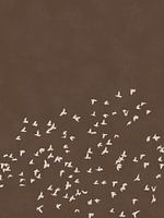 Koop dit vogel kunstwerk Minimalistisch Japandi met Chocolade Bruine Achtergrond en Zwerm Vogels van Daring Dutch Designers op canvas, aluminium dibond, (ingelijste) fotoprint, behang en ArtFrame, op maat geprint in Fine-Art kwaliteit.