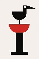 Minimalistisch Kunst: Vogel op Rode Voederbak van Imperial Art House