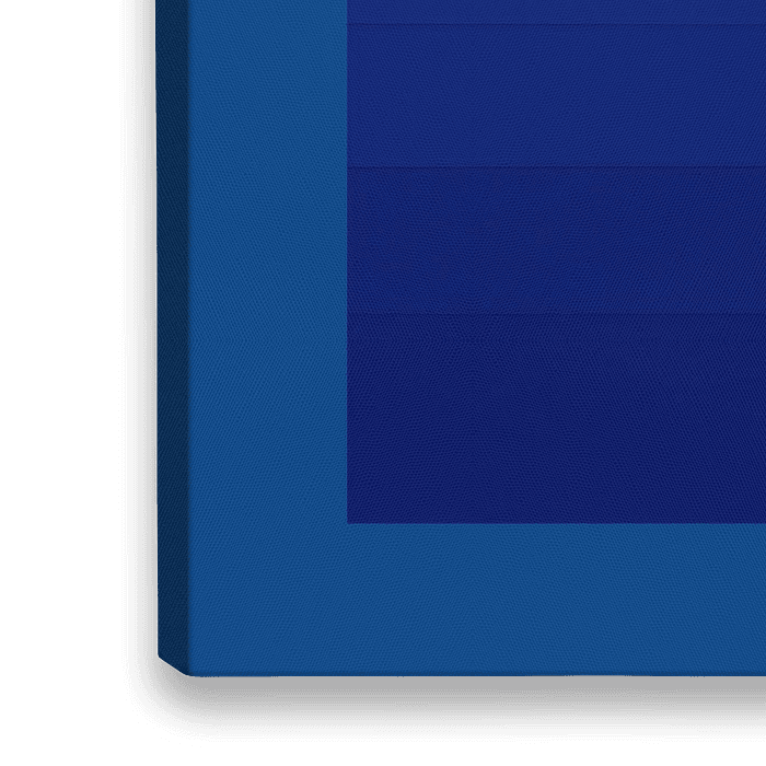 Dit abstracte, minimalistische kunstwerk straalt sereniteit uit door het gebruik van Blauw tinten in Ton-sur-Ton.