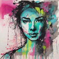 Naast de opvallende visuele aanwezigheid weerspiegelt dit portret een balans tussen modern minimalisme en tijdloze artistieke expressie. De transparante lagen aquarel verrijken het lineaire kader en creëren harmonie tussen structuur en beweging. Het portret voelt eigentijds en toch universeel aan, waardoor het veelzijdig is voor vele omgevingen, van artistieke studio's tot moderne woonkamers. Het is meer dan alleen een afbeelding van een vrouw; het is een verkenning van eenvoud verheven door levendige energie, een stuk dat spreekt tot innerlijke gratie en individualiteit. Met zijn ingehouden elegantie en schilderkunstige toets wordt dit kunstwerk zowel een statement als een bron van inspiratie en viert het de schoonheid van minimale details en expressieve vloeiendheid.