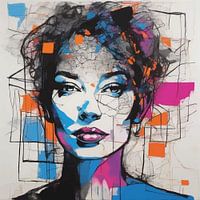 Naast de opvallende visuele aanwezigheid weerspiegelt dit portret een balans tussen modern minimalisme en tijdloze artistieke expressie. De transparante lagen aquarel verrijken het lineaire kader en creëren harmonie tussen structuur en beweging. Het portret voelt eigentijds en toch universeel aan, waardoor het veelzijdig is voor vele omgevingen, van artistieke studio's tot moderne woonkamers. Het is meer dan alleen een afbeelding van een vrouw; het is een verkenning van eenvoud verheven door levendige energie, een stuk dat spreekt tot innerlijke gratie en individualiteit. Met zijn ingehouden elegantie en schilderkunstige toets wordt dit kunstwerk zowel een statement als een bron van inspiratie en viert het de schoonheid van minimale details en expressieve vloeiendheid.