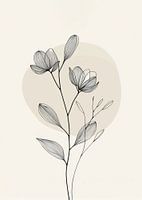 Stijlvolle minialistische botanische tekening in de japandi stijl. Rustige en een minimalistische organische illustratie. Stijlvol en tijdloos.