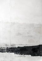 Abstract werk bestaat uit een eenvoudige, doch krachtige compositie van voornamelijk wit en zwart, met subtiele grijze tinten die de overgang tussen deze twee uitersten verzachten. De bovenkant van het werk is gevuld met zachte, wazige lagen van wit en lichtgrijs, die een gevoel van leegte en ruimte oproepen. Naar de onderkant toe wordt de compositie gedomineerd door een dikke, zware zwarte strook, die horizontaal over het doek loopt en het gevoel van een horizon of scheidslijn tussen lucht en aarde suggereert.