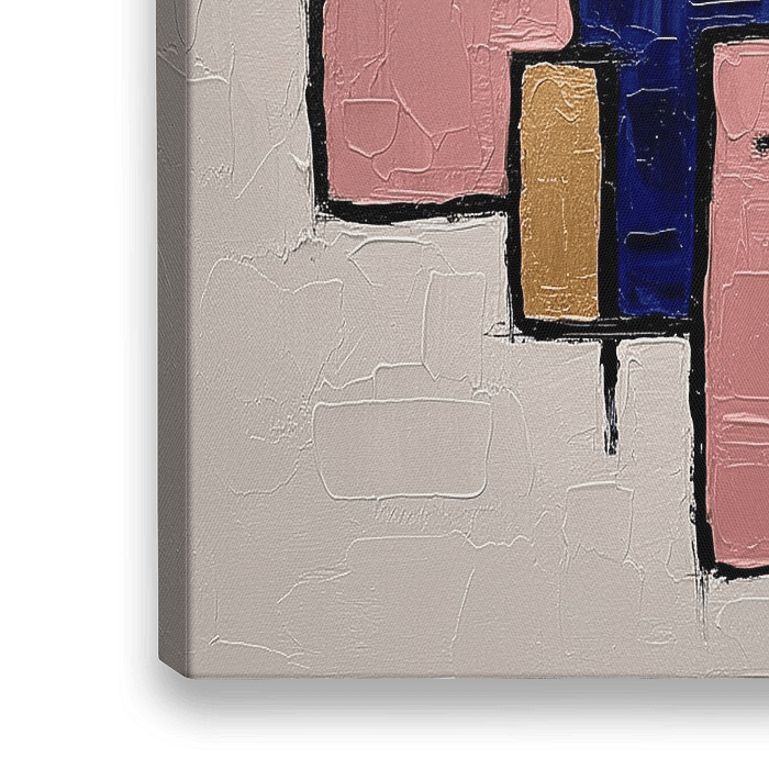 Koop dit abstracte kunstwerk Minimalistisch en abstract kunstwerk in beige, blauw, zalm en goud van Studio Pieternel op canvas, aluminium dibond, (ingelijste) fotoprint, behang en ArtFrame, op maat geprint in Fine-Art kwaliteit.