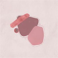 De compositie bestaat uit organische, afgeronde vormen in verschillende roze- en bessentinten (zoals gedempt roze en mauve), deels omlijnd met dunne, schetsmatige lijnen.