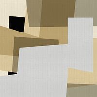 Deze serie abstracte geometrische kunstwerken verkent de kracht van eenvoud door middel van basisvormen en een zorgvuldig gekozen neutraal palet. Zacht beige, warm bruin, gedempt grijs en koel lichtblauw worden gecombineerd met diepzwarte accenten om een sterk maar evenwichtig visueel ritme te creëren. De overlappende geometrische blokken brengen een gevoel van orde, structuur en modern design terwijl het oppervlak getextureerd en tactiel blijft.