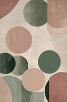 Dit prachtige ontwerp is een perfect voorbeeld van minimalistische abstracte kunst, waar eenvoudige vormen en subtiele kleuren samenkomen om een rustgevend visueel effect te creëren. De combinatie van cirkels en rechthoeken in zachte tinten groen, roze, beige en bruin maakt dit kunstwerk een uitstekende keuze voor een moderne, serene sfeer in elke kamer. Het is ideaal voor ruimtes zoals kantoren, slaapkamers of woonkamers waar een kalmerende en moderne uitstraling gewenst is. De geometrische vormen stralen eenvoud uit, terwijl de ingetogen kleurkeuze een gevoel van balans en rust bevordert. Dit kunstwerk zal perfect passen in minimalistische of moderne interieurs en geeft een subtiele, maar stijlvolle esthetische touch aan uw ruimte.