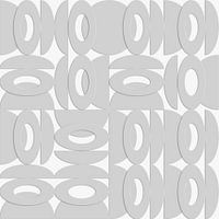 Dit kunstwerk heeft een minimalistisch geometrisch ontwerp met een subtiel driedimensionaal effect, gecreëerd door de opstelling van ovalen en halve cirkels in verschillende grijstinten tegen een strakke witte achtergrond. De precieze plaatsing van de vormen geeft het patroon diepte en structuur, terwijl het ingetogen palet de algehele uitstraling rustig en verfijnd houdt. Het ontwerp haalt inspiratie uit mid-century en retro grafische kunst, maar blijft modern in zijn eenvoud en helderheid.