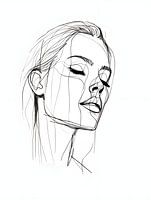Minimalistische tekening van gezicht van ontspannen jonge vrouw in zwart wit.