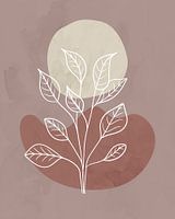 Minimalistische illustratie van een gestileerde boom, een meertje en de zon. De abstracte landschap heeft maar drie kleuren: wit, licht beige en twee variaties van terracotta bruin. De bruintinten representeren de herfst als geheel, en wit en beige staan voor het zonlicht, dat in de herfst net iets koeler lijkt dan in de zomer.…