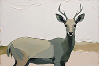 Dit prachtige kunstwerk toont een sereen hert in een minimalistische en abstracte stijl. De vloeiende lijnen en zachte, neutrale tinten geven het werk een rustige en kalmerende sfeer. Het eenvoudige kleurgebruik, met subtiele tinten van beige en groen, maakt dit ontwerp perfect voor elke moderne inrichting. Het hert staat centraal en wordt omringd door een vlakke achtergrond, wat het ontwerp een strakke en verfijnde uitstraling geeft. Dit werk zou prachtig staan in een slaapkamer of kantoor, waar het zorgt voor een gevoel van sereniteit en rust. Een perfecte keuze voor liefhebbers van minimalistische en natuur-geïnspireerde kunst.