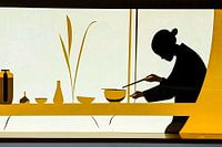 Een prachtig minimalistisch kunstwerk dat perfect is voor liefhebbers van strakke lijnen en moderne interieurs. Dit ontwerp toont een serene silhouet van een kok in actie, met een harmonieus spel van geel en zwart. Het eenvoudige, doch stijlvolle design straalt rust en verfijning uit. Ideaal voor ruimtes zoals de keuken of eetkamer, en een geweldige toevoeging voor elk hedendaags interieur. De subtiele details maken dit kunstwerk een echte blikvanger die tegelijkertijd niet te dominant is. Laat je inspireren door de eenvoud en schoonheid van dit unieke ontwerp.