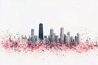 Minimalistisch kunstwerk: chicago skyline met pastel verfexplosie van Thea