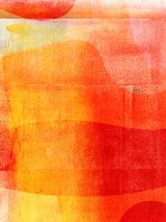 Abstract in neon aardetinten. Geel, verbrand oranje, terra.Dina Dankers Roze lagen. Moderne abstracte kunst in terra en neonroze.Dina Dankers