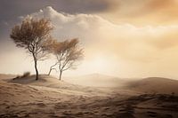 Dit beeld vangt de essentie van serene schoonheid, waar de zachte contouren van de duinen harmoniëren met de kracht en eenzaamheid van een enkele boom. De minimalistische benadering benadrukt de tijdloze gratie van de natuur in haar meest pure vorm. Voor liefhebbers van minimalistische kunst en degenen die de diepere betekenis van eenzaamheid in de natuur begrijpen. Voeg dit kunstwerk toe aan je verzameling en breng de rustgevende en verfijnde uitstraling van de natuur in je leefruimte.