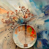 Dit abstracte werk in verschillende technieken straalt kracht en warmte uit.
