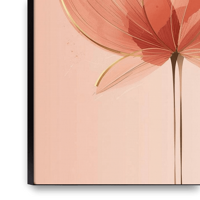 Een delicaat en rustig abstract kunstwerk met een bloem in zachte tinten beige, terracotta en goud. De eenvoudige vorm en lichte achtergrond geven dit werk een minimalistische en zen uitstraling. Ideaal voor liefhebbers van Scandinavisch design, wabi-sabi en moderne vormen en lijnen.