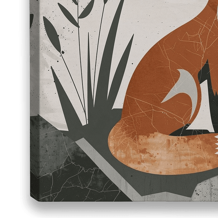 Dit artistieke stuk brengt de essentie van de natuur naar elke ruimte. Met strakke lijnen en eenvoudige vormen, portretteert dit ontwerp een vos in een minimalistisch landschap. Het palet bestaat uit gedempte aardetinten, waaronder oranje, wit, en accenten van zwart en groen, wat zorgt voor een rustige, maar intrigerende sfeer. Ideaal…