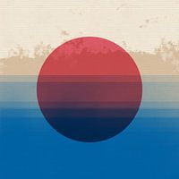 Deze moderne collectie abstracte landschapskunstwerken mengt neonkleuren en pastelkleuren met een minimalistisch ontwerp en gestileerde zonnevormen. Cirkelvormige schijven die de zon of de maan voorstellen vormen een fel contrast met zacht gelaagde horizonlijnen en creëren een gevoel van ruimte, licht en sfeer. De composities maken gebruik van kleurblokken in terracotta, koraalroze, diep marineblauw, beige en kobaltblauw, die gloeiende luchten en abstracte natuurscènes oproepen.
