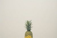 Een enkel kunstwerk van een ananas in minimalistische stijl. De eenvoudige achtergrond en het heldere licht benadrukken de natuurlijke schoonheid van de ananas en creëren een gevoel van rust en harmonie. Ideaal voor liefhebbers van moderne en minimalistische esthetiek die op zoek zijn naar een fris en elegant kunstwerk voor hun interieur. Perfect als decoratiestuk in de keuken, eetkamer of woonkamer.