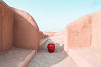 Deze foto fascineert door zijn minimalistische compositie. Een enkele rode kan staat tussen twee massieve lemen muren - een schril contrast in kleur en vorm. De foto combineert traditionele architectuur met een moderne beeldtaal die werkt met heldere lijnen, zachte structuren en een harmonieus kleurenspel. Het motief spreekt van…