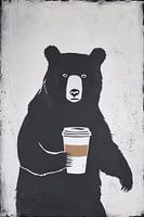 Een opvallend, minimalistisch kunstwerk dat een beer met een koffiebeker in zwart-wit toont. Perfect voor liefhebbers van moderne en speelse kunst. De eenvoudige lijnen en het contrastrijke ontwerp maken het een geweldige toevoeging aan elke ruimte, zoals een kantoor of woonkamer. Dit ontwerp geeft een vleugje humor en stijl, terwijl het tegelijkertijd een rustige en moderne uitstraling heeft. Een ideale keuze voor iedereen die een unieke en opvallende eyecatcher zoekt.