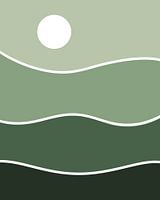Abstracte minimalistische illustratie van een landschap waarin een combinatie van de bergen en de zon te zien zijn.