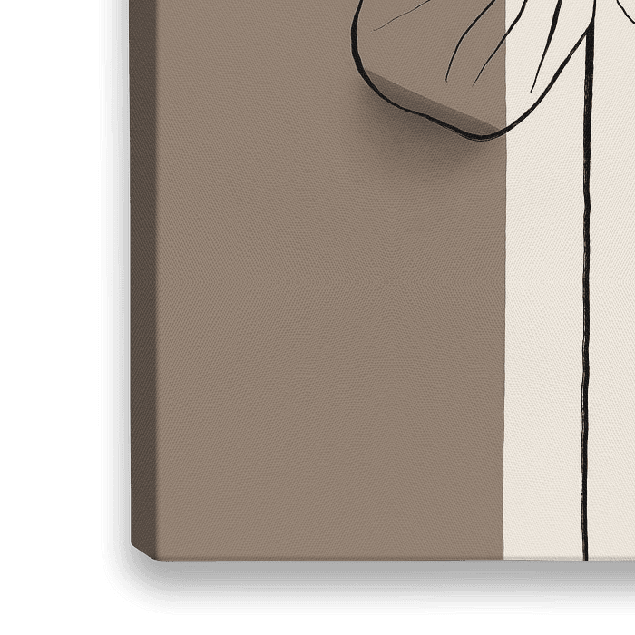 Een sierlijke minimalistische bloem getekend in fijne zwarte lijnen over warme neutrale tinten. Dit abstracte botanische kunstwerk mengt eenvoud en moderne elegantie en creëert een kalme en stijlvolle sfeer die perfect is voor elke hedendaagse ruimte.